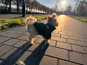 Avoid cold shivers on early morning walks with warm dog jacket